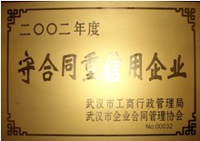 2001年度武汉市工商行政管理局颁发的重合同守信誉企业证书