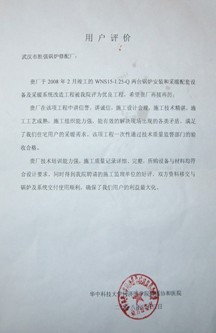 湖北日报传媒集团锅炉房、社区泵房及供暖系统改造设备设施安装用户评价复印件