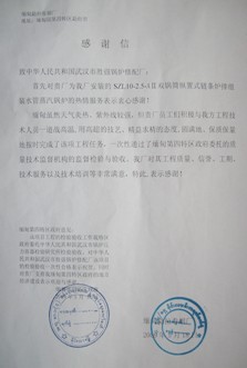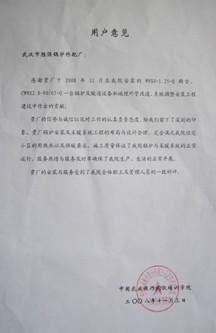 华中科技大学同济医学院附属协和医院对我司锅炉及系统安装服务评价书影印件装